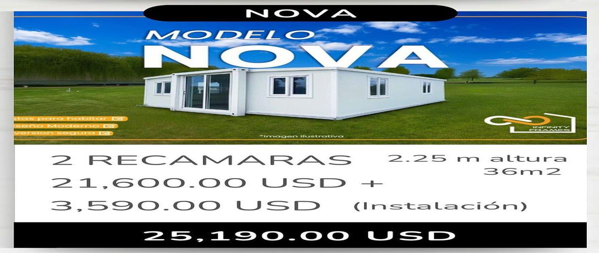 Includes: kitchen with upper and lower cabinets full bathroom electrical system drainage system insulated panels fire-resistant flooring and walls double-glazed windows 2-bedrooms total interior area:...
