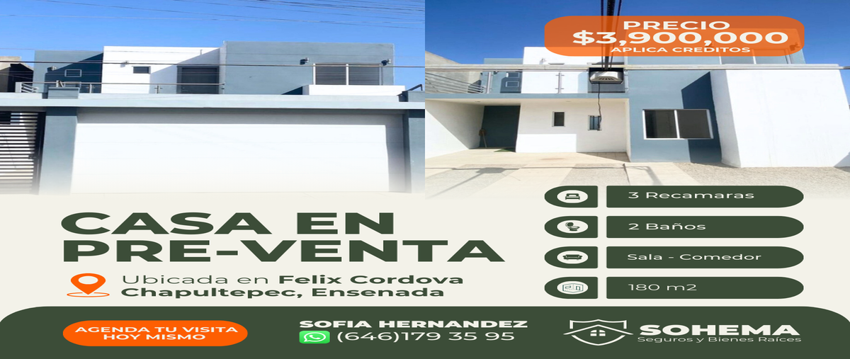 Casa en pre venta – félix córdova, ensenada, b. a media cuadra de reforma, estero beach, nuevo hospital imss, una ubicación privilegiada precio:$3,900,000 mxn ✨ características ideales para tu fam...