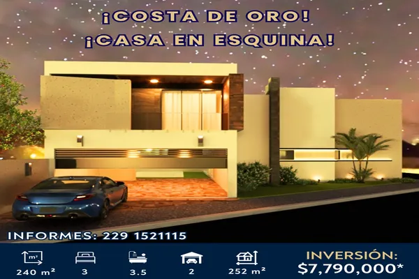 Nocnok id: nn-gxj317. ✨️ ¡costa de oro! ¡casa nueva en esquina! ¡frente a parque y con jardín! ? costa de oro, boca del río ⛳️ 240 m² de terreno ? 253 m² de construcción ? inversión: $7,790,000*...