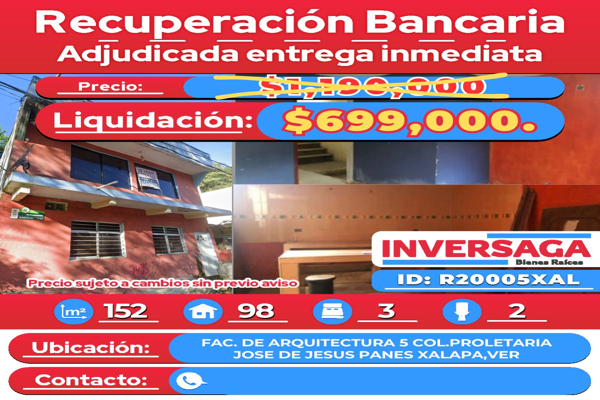 Casa en venta bien distribuida localizada en facultad de arquitectura num. ext. 5 num. int. s/n colonia josé de jesús panes c. 91053, veracruz de ignacio de la llave. no se acepta ninguntipo de cr...