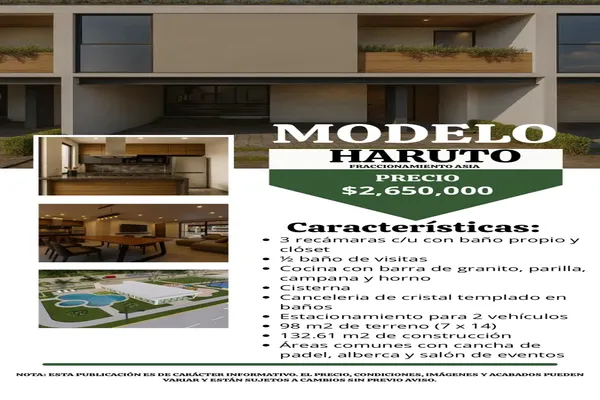 Nocnok id: nn-guy018. en venta, casas nuevas de 2 y 3 recámaras en el fraccionamiento asia (pasando pomoca). modelo haruto de 3 recámaras: ? 3 recámaras, cada una con baño completo y clóset ? ½ bañ...