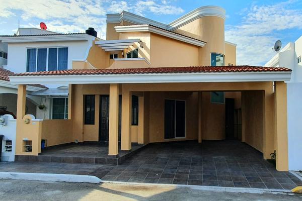En renta casa con alberca, 4 recamaras con baño en cada una en fraccionamiento privado, hacienda del mar, ciudad del carmen, campeche. planta baja: garaje techado para 2 vehiculos, sala, comedor, coc...