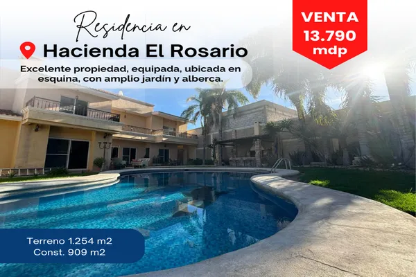 Nocnok id: mx24-pz7309. ¡¡ residencia en venta, en hacienda del rosario !! amplia residencia en hacienda el rosarío 1ra. etapa, ubicada en esquina, equipada, amplio jardín con alberca, terraza y as...