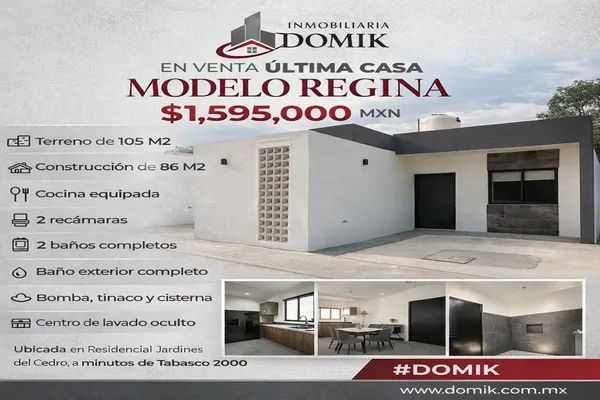 Nocnok id: nn-gwa481. en venta última casa modelo regina $1,595,000 ? casa modelo regina ? terreno de 105 m2 ?️ construcción de 86 m2 ?️ cocina totalmente equipada con tarja y parrilla ?️ 2 r...
