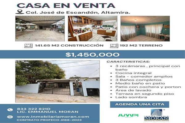 Casa en venta en colonia josé de escandón, altamiraprecio: $1,450,000terreno: 192 m²construcción: 141 m²propiedad con excelente distribución y espacios amplios, ubicada en zona tranquila y de fácil...