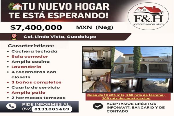 Espaciosa casa en venta bien distribuida localizada en linda vista, guadalupe centro c. 67100, nuevo león. cuenta con 3 baños, 200 metros cuadrados, 4 recamaras, y 2 pisos.