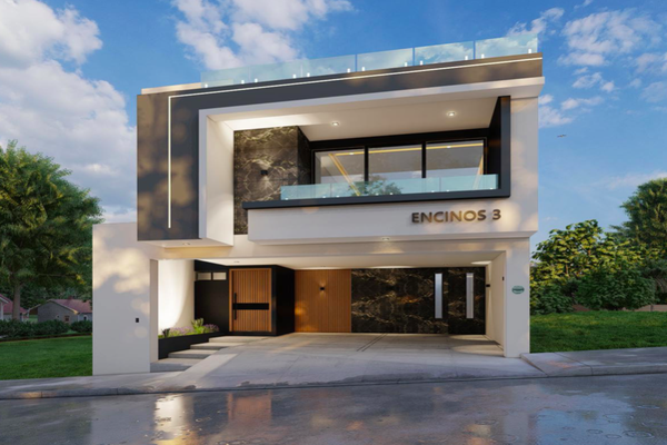 Proyecto encinos 3 - 320m2 de construcción planta baja: cochera techada para 2 vehiculos 1/2 baño sala comedor cocina con desayunador jardín interior terraza trasera techada 1/2 baño de alberca jardin...