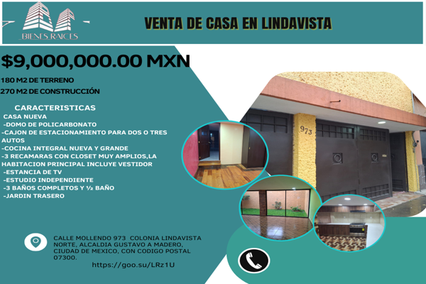 Hermosa casa en venta con buena ventilación ubicada en mollendo 973 num. ext. 973 num. int. s/n colonia lindavista norte c. 07300, df / cdmx. tiene 3 baños, 1 medio baño, 1 año de antigüedad, 270 m...