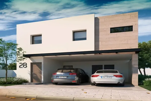 Nocnok id: mx25-ni10051. modelo balandra planta baja cochera semitechada para 2 autos cocina sala comedor lavandería baño de visitas bodega pasillo de servicio patio planta alta sala de tv closet de ...