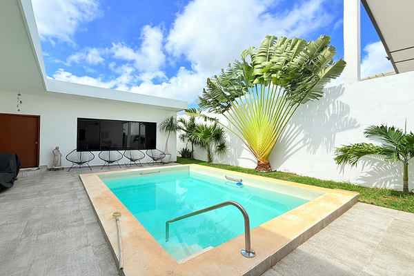 : * cochera techada 2 autos * sala-comedor * cocina * 3 habitaciones con baño, aire acondicionado y ventiladores c/u. ( la principal con closet vestidor) * piscina * terraza techada con ventilador * c...