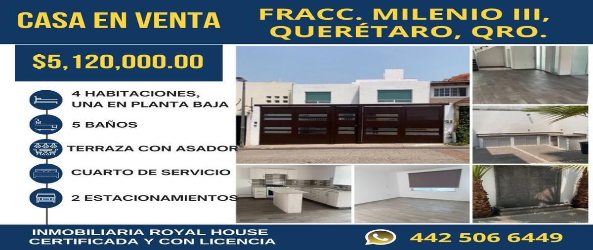 $5,120,000 casa sola en venta, fracc. milenio iii, querétaro, méxico - terreno: 173 - construcción: 217 m2 - terraza con asador: 38 m2 aprox. - 4 recámaras, todas con baño - 5 baños comp...