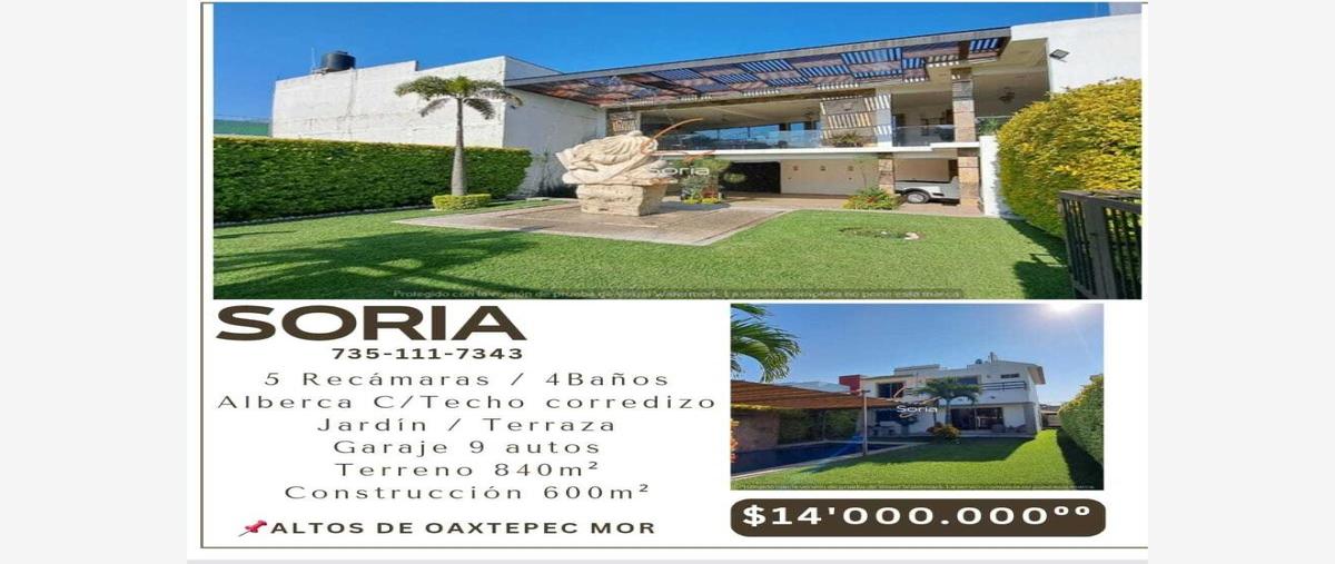 Nocnok id: mx24-qb7666. casa en oaxtepec mor. ubicada en el fracc. altos de oaxtepec. 840m2 terreno 600m2 construccion sala comedor cocina equipada 4 baños 5 recamaras sala de tv alberca equipa...