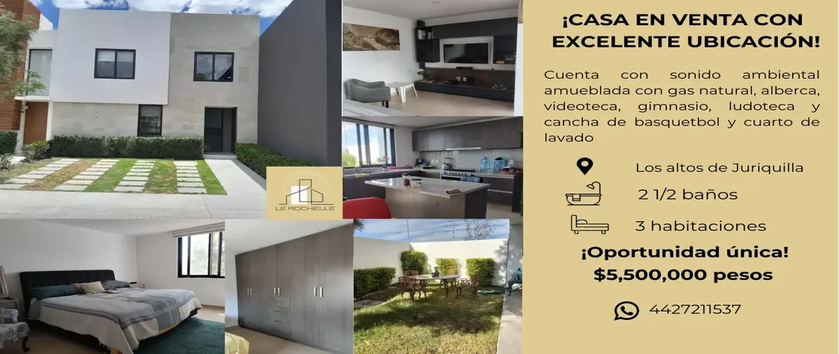 Nocnok id: mx25-ry8395. casa en venta en altos juriquilla, querétaro, querétaro. 3 habitaciones, 2 baños completos, 121 medios baños, 178m² de terreno, 210m² de construcción. cuenta con amueblado, gas...
