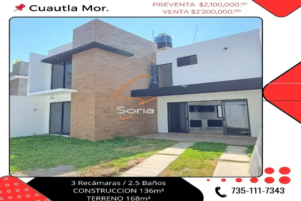 Nocnok id: mx24-qb5933. casa en cuautla morelos excelente ubicacion. precio de pre -venta $2,100,000 precio venta $2,200,000 terreno sup 168 construcción 136 aprox p. baja sala cocina-...