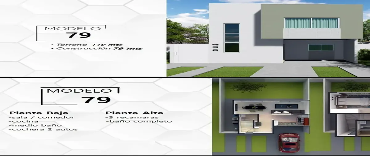 Nocnok id: nn-ka1000182. modelo 79 precio nuevo $1’350,000 ? 79m2 construcción ? 119m2 terreno 7m2 frente por 17m2 fondo ? características ? ?️ 3 recámaras ? 1 baño ??cocina ?️sala- co...