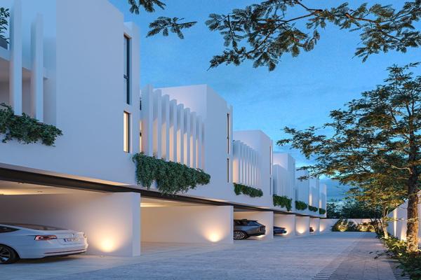 Conjunto de 7 homes con acabados de lujo, 2 recámaras y estudio, en la mejor ubicación de mérida, temozón norte. modelo de 2 rec planta baja garage techado para dos autos sala comedor cocina con islet...