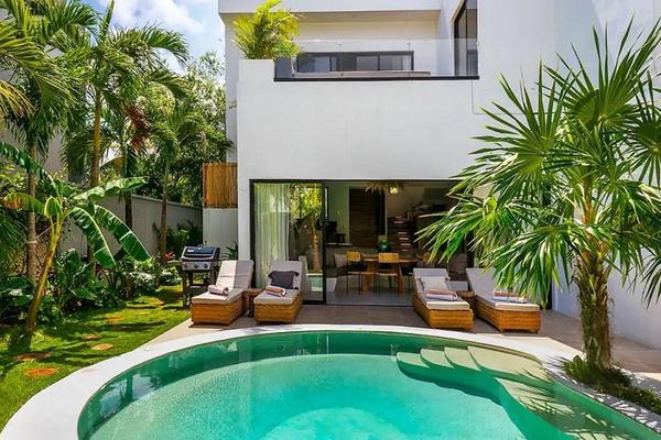 Villa angelina 5 recamaras tulum centro roi 11% suite tu 502 esta villa en tulum es una notable representación de la arquitectura vanguardista perfectamente armonizada con la belleza natural de la se...