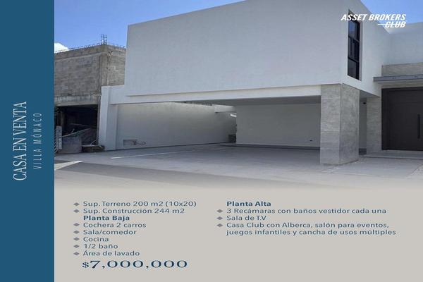 Casa en venta villa mónaco sup. terreno 200 m2 (10x20) sup. construcción 244 m2 planta baja cochera 2 carros sala/comedor cocina 1/2 baño área de lavado planta alta 3 recámaras con baños vestidor cada...