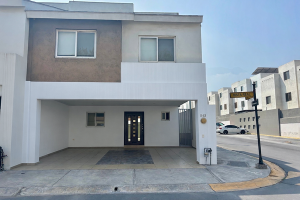 Casa en venta o renta en residencial puerta de hierro, mty, n. casa en privada con seguridad 24/7 en esquina, a un lado tiene el estacionamiento de visitas. plata baja: cochera para 2 autos y un esp...