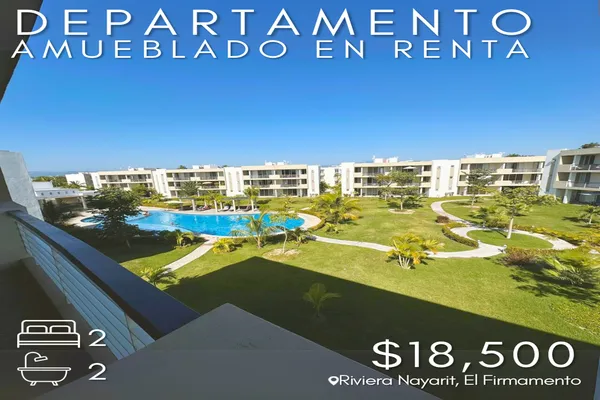 Nocnok id: mx25-bk1614. departamento en renta completamente amueblado en el firmamento, riviera nayarit 1 año de contrato ?️ 2 recámaras(queen size beds) ? 2 baños completos ?? cocina equipada ?️? s...