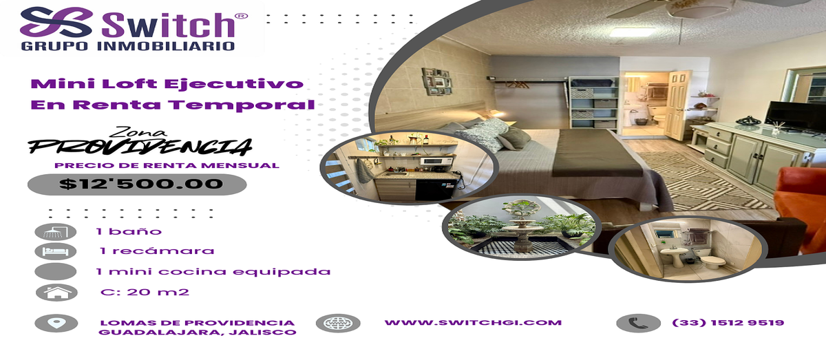 Mini loft ejecutivo en providencia | entrada privada | excelente ubicación loft totalmente independiente en una de las mejores zonas de guadalajara. ideal para ejecutivo. incluye: - cama matrimonial -...