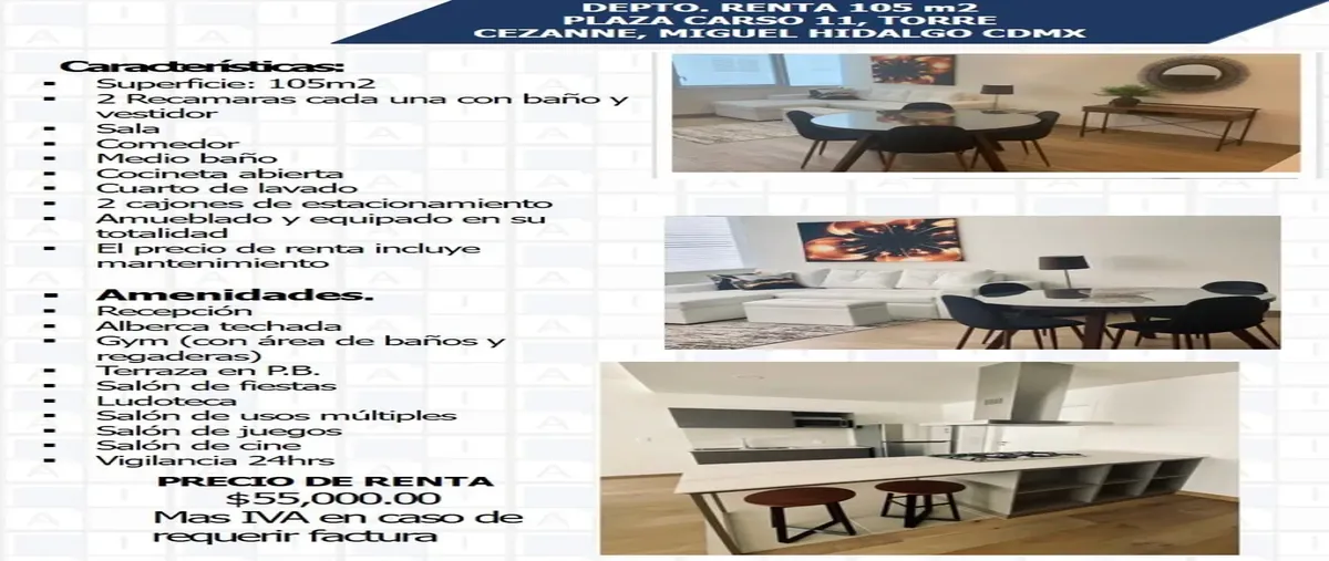 Nocnok id: nn-st1000588. características: superficie: 105m2 2 recamaras cada una con baño y vestidor sala comedor medio baño cocineta abierta cuarto de lavado 2 cajones de estacionamiento amueblado y ...