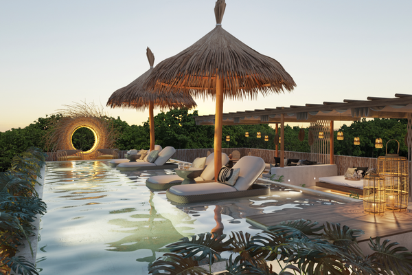 Total area: 76 m² price: $5,140,000 mxn location: 6g2m+2x tulum, quintana roo bedrooms: 2 bathrooms: 2 extras: kitchen living area amenities: rooftop with pool commercial spaces gym reception swimming...