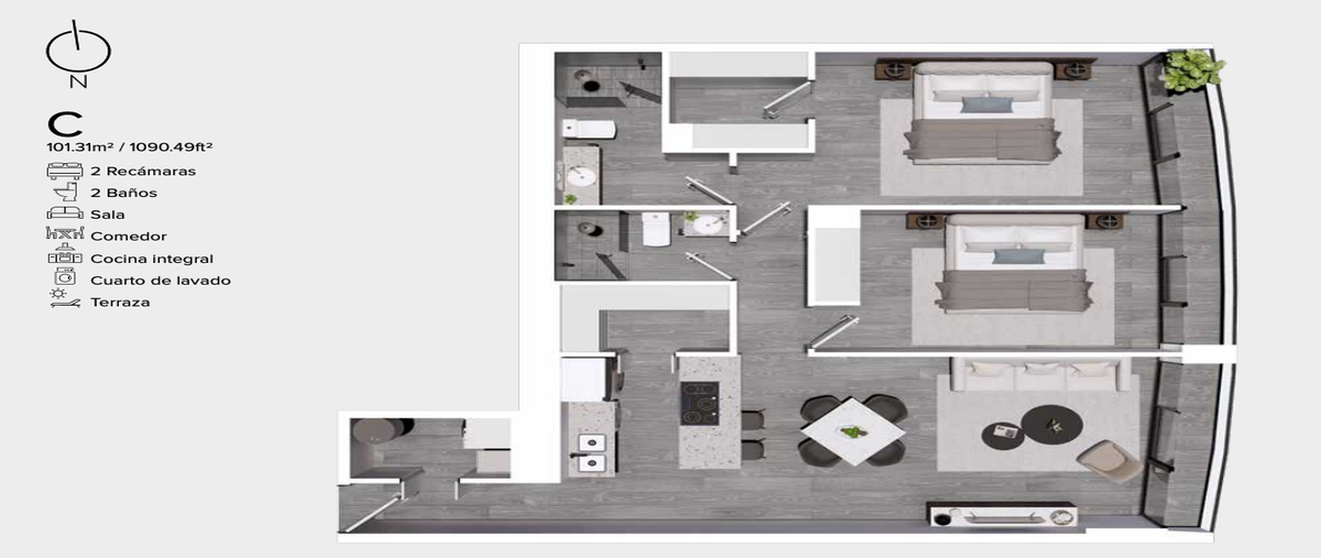 - 2 Recámaras