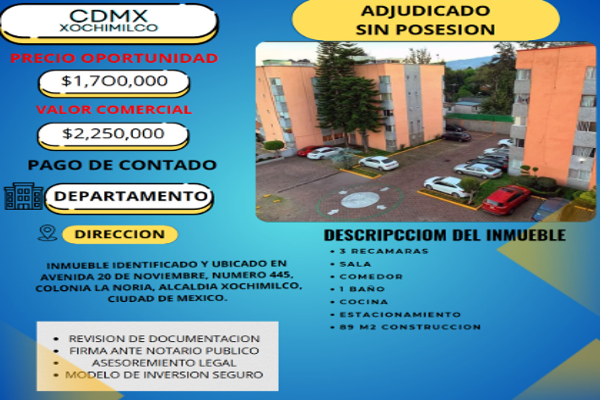 Atencion invercionistas excelente departamento en venta listo para habitar se encuentra en avenida 20 de noviembre num. ext. s/n num. int. s/n colonia la noria c. 16030, df / cdmx. cuenta con 1 bañ...