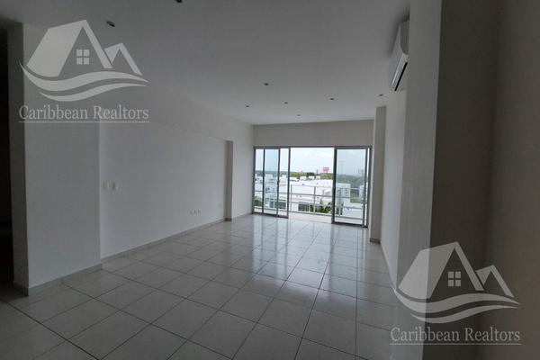 B-clm7598departamento en venta en residencial astoria soho elite, av huayacán cancún, en cancún, departamento con área de sala, comedor, cocina integral con estufa y campana, y una amplia terr...