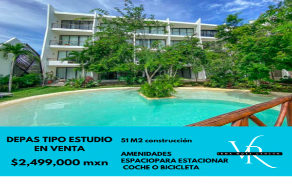 Departamento - tipo estudio en venta, en tulum: -51 m2 - 1 recamara -1 baño completo -cocineta -balcon - 48 unidades en total (revisar disponibilidad y ubicación dentro del edificio) ----- amenidades:...