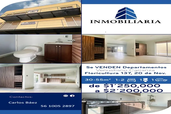 Nocnok id: mx24-ds9422. departamentos completamente nuevos en floricultura 137, col. 20 de noviembre en venustiano carranza, es un edificio de sólo 3 pisos con sólo 6 departamentos, todos los departam...