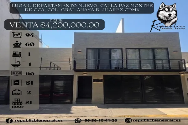 Nocnok id: nn-gwc236. 3 diferentes tipos de departamentos ubicados en calle paz montes de oca, colonia gral anaya, benito juarez. ubicacion. - a 5 minutos de plaza mitikah - a 5 minutos de cineteca ...