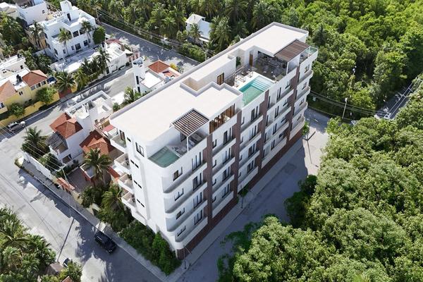 Departamento en venta en puerto morelos, con dos habitaciones y 79 m². cuenta con amenidades como alberca en roof top, asoleadero con vistas al mar, gimnasio, lobby, salón multiusos, sala tv y cowo...