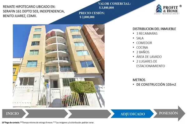 Nocnok id: mx24-wu8203. ¡remate bancario! adjudicado tiempo de entrega de 8 a 10 meses precio de la cesión $2,800,000 valor de mercado $3,800,000 pago de contado no se aceptan créditos (bancarios, inf...