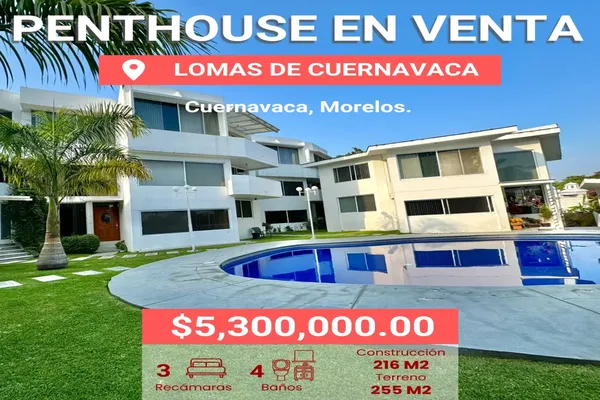 Nocnok id: mx24-oe4504. penthouse en venta lomas de cuernavaca $5,300,000 mxn privada con vigilancia las 24 hrs condominio con 3 casas, 1 pent house y 4 departamentos. terreno 255 m2 construcció...