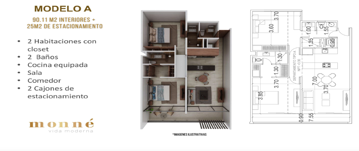 Monné es un desarrollo compuesto de 75 departamentos dispuestos en 2 torres gemelas que convergen en una zona de áreas comunes con una variedad de amenidades. ofrece 8 diferentes modelos entre estudio...