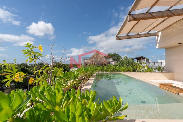 Penthouse en venta en tulum ¡listo para habitar o rentar! penthouse de lujo con diseño contemporáneo * 111 m² de construcción.* 2 habitaciones / 2 baños completos.* terraza con alberca privada ...