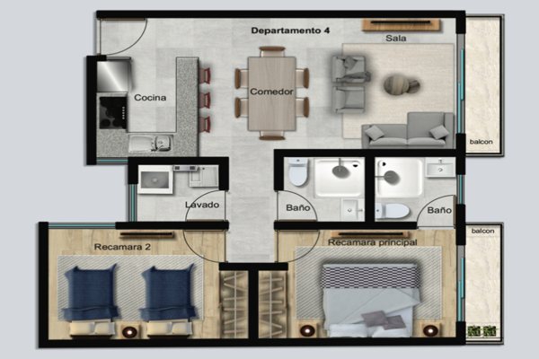- 2 Recámaras