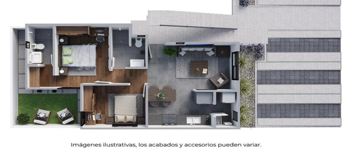 Modelo de una planta con cajón de estacionamiento, espacios con la distribución ideal para aprovechar tu hogar al máximo. 1 recámara principal con espacio para clóset y baño 1 recámara con espacio par...