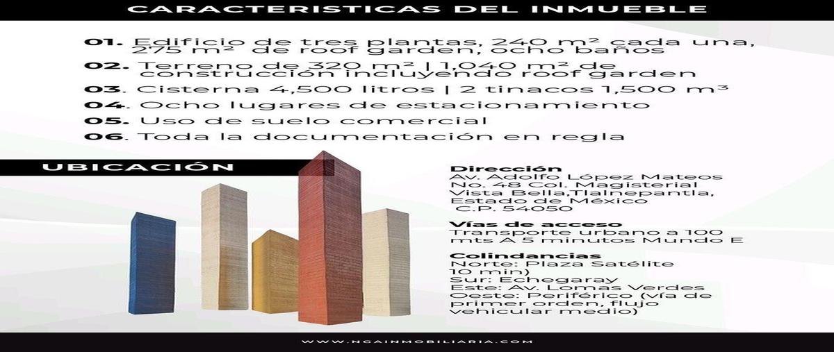 Edificio comercial en venta | zona satelite, mundo e, tlanepantla | 1,040 m2 de construcción , uso de suelo comercial, 3 niveles + roof garden mx$ 18,500,000 av lopez mateos, tlalnepantla, esta...