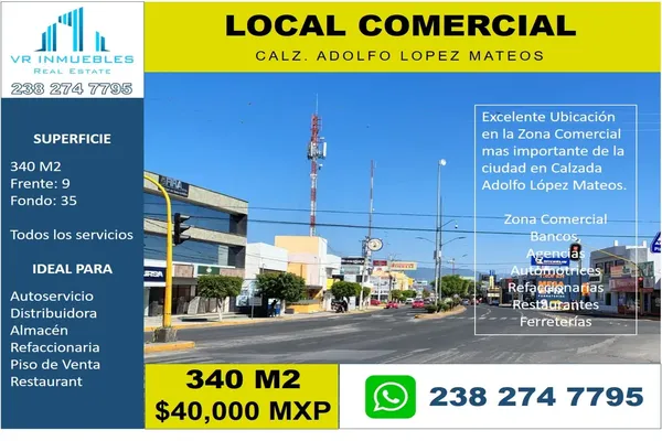 Nocnok id: nn-gqb856. excelente ubicación en la zona comercial mas importante de la ciudad en calzada adolfo lópez mateos. zona comercial, bancos, agencias, automotrices, refaccionarias, restaurantes,...