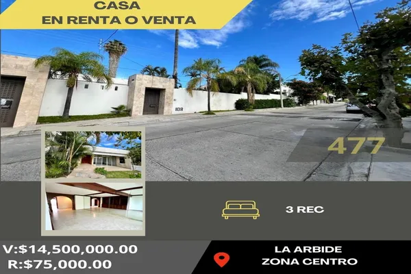 Nocnok id: nn-fa1000215. ? *casa dn renta o venta* ?la arbide ?984 m2 t/ 635 m2 c •ideal para oficinas •3 recámaras •sala •jardín •amplios espacios *v:$14,500,000* *r:$75,000*...