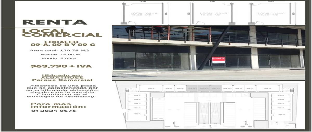 Local en renta plaza albatross 120 m2 planta baja renta $63,000 al lado de preparatoria alvaro obregon sobre ave churubusco casi esq con miguel aleman seguridad 24 hrs amplio estacionamiento