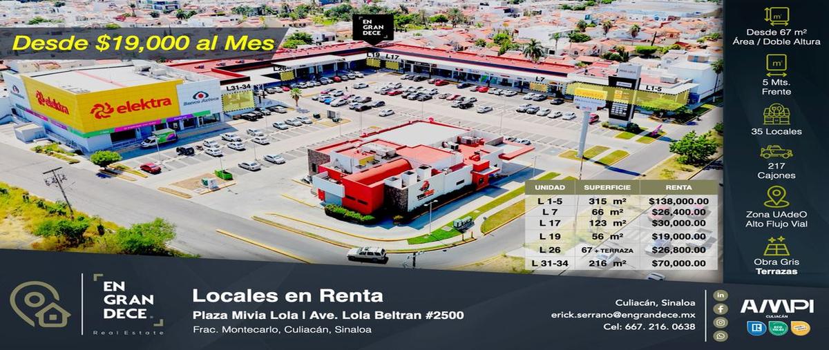 Locales comerciales en renta desde 67m2 ubicada sobre blvd. lola beltrán en el sector humaya, mivía lola se convierte en un punto de referencia para productos y servicios de la zona, cubriendo un sect...