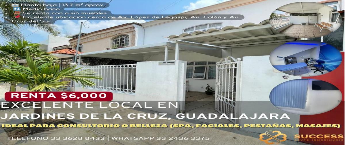 Local en renta – jardines de la cruz, guadalajara descripción local en planta baja con medio baño, ideal para consultorio médico o giros relacionados al área de salud y belleza (spa, faciales, pestañ...
