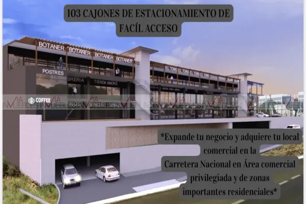 Nocnok id: nn-gus353. local comercial en renta ideal para famacia, banco, galeria, etc. en la carretera nacional en una amplia plaza comercial de 80m de frente, ubicado en la planta baja de la plaza, ...