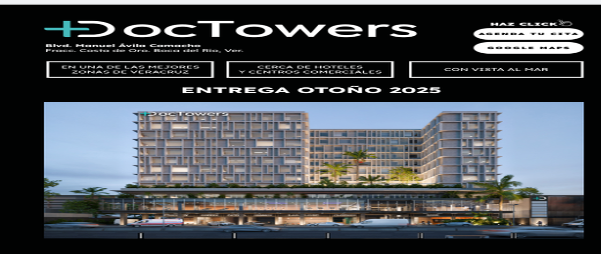 Tenemos en preventa consultorios y locales en torre doctowers ubicada sobre el boulevard manuel ávila camacho en el frac costa de oro en boca del río, una de las mejores zonas de veracruz, cerca de ho...