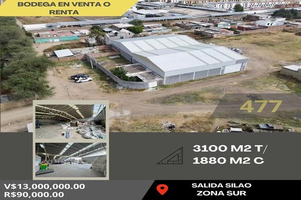 Bodega en renta o venta ????atrás de villa asturiana salida a silao ????3,100 m2 t/ 1,880 m2 c•transformador •amplia área de maniobras renta $90,000 $13,000,000