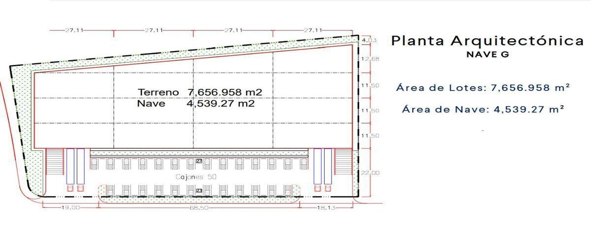 Nave en renta aaa parque san javier apodaca n. superficie : 7,685. 99 m2 superficie de la nave : 4 ,539. 27 m2 50 cajones de estacionamiento. lista en 4 meses. precio de $125 por m2 + iva costo c...